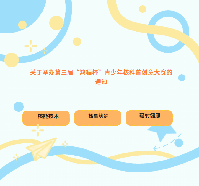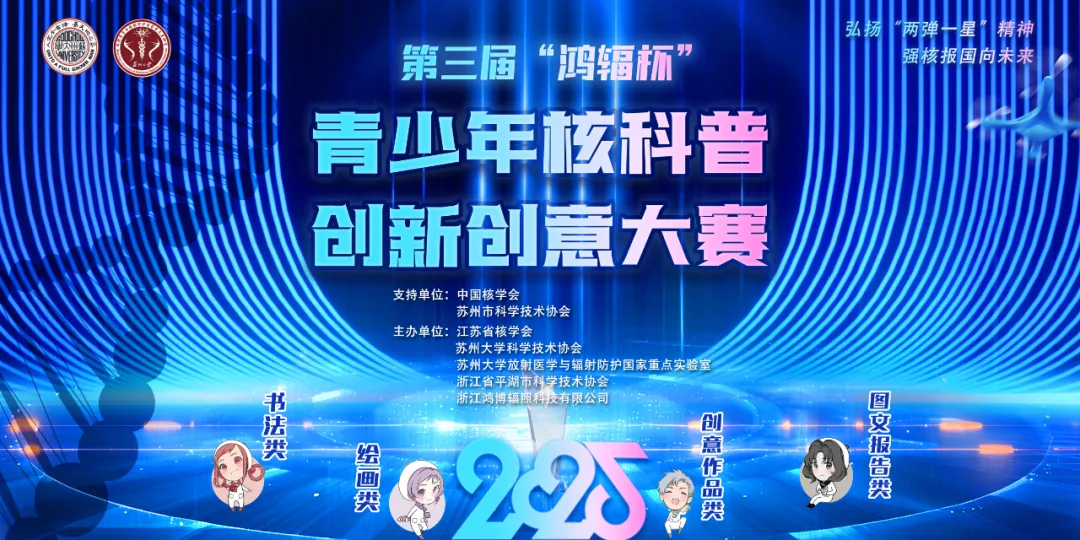 在第二十五个全国科技活动周期间,围绕“矢志创新发展 建设科技强国”主题,苏州大学放射医学与辐射防护国家重点实验室积极践行科技创新使命,精心策划并开展“赓续报国志・核你强国行”苏大放医国重室全国科技周暨全国科技工作者日系列活动,“鸿辐杯”青少年核科普创新创意作品大赛作为本次系列活动的重要内容,现面向中小学生征集作品,旨在以“核能核技术”、“辐射与健康”等科普内容为建设重点,促进核能核技术相关知识在全民的传递和普及。