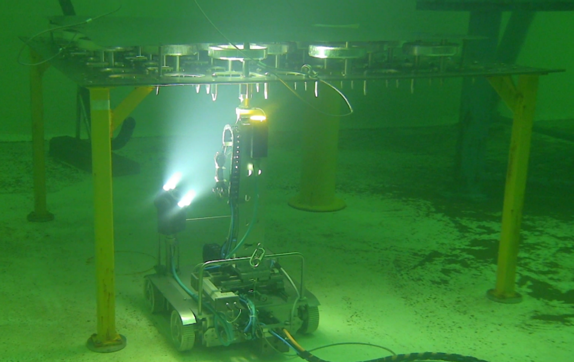 控制棒导向筒开口销是核反应堆上部堆内构件重要连接件,其作用是为控制棒导向筒和上栅格板安装提供连接和定位,当控制棒导向筒受到冷却剂水平流动冲击时为其提供横向支撑,并方便控制棒导向筒轴向拆卸和释放热应力。堆内构件直接与反应堆冷却剂接触,处于高温、高压、强中子辐照、热载荷和振动载荷等工作环境,长期运行后存在产生应力腐蚀裂纹(SCC)的风险。超声检测对材料内部裂纹具有较高的检测灵敏度,是开口销有效的检测手段。超声检测工艺的设计需综合考虑开口销结构特点、探头声束可达性和检测灵敏度以及检测效率等多方面因素。项目克服开口销结构限制、检测面小等难点,利用有限尺寸空间设计了一种高集成度组合式探头,将5个晶片集成在一个探头里,其中最小的一个晶片仅2 mm宽。高集成度的组合式探头仅需旋转1次就可实现对开口销3个敏感区域的检测,具有较高的检测效率,同时可检出10 mm×2 mm的缺陷,缺陷检出能力高于国外相关技术。开发的控制棒导向筒开口销水下超声检查机器人,由远程控制的履带式底盘、基于视觉定位的笛卡尔四自由度定位模块和超声系统组成,可实现基于机器学习的水下高集成超声探头的亚毫米级定位。该机器人授权发明专利4项,经中国核能行业协会鉴定,总体技术达到国际领先水平。