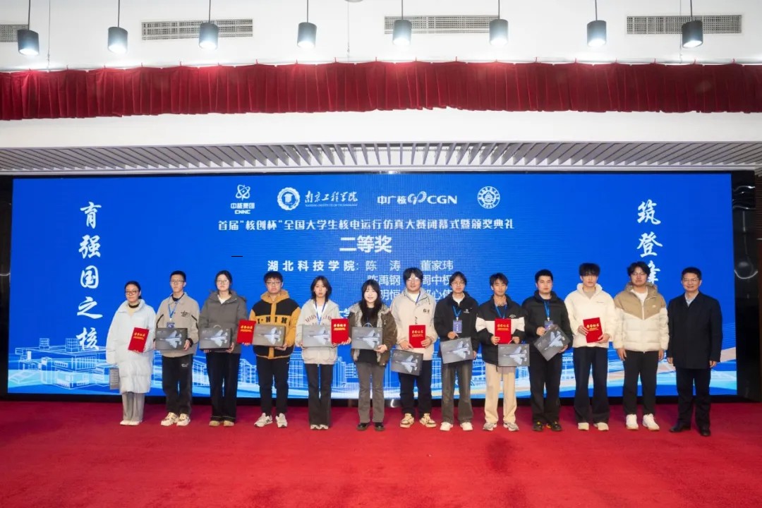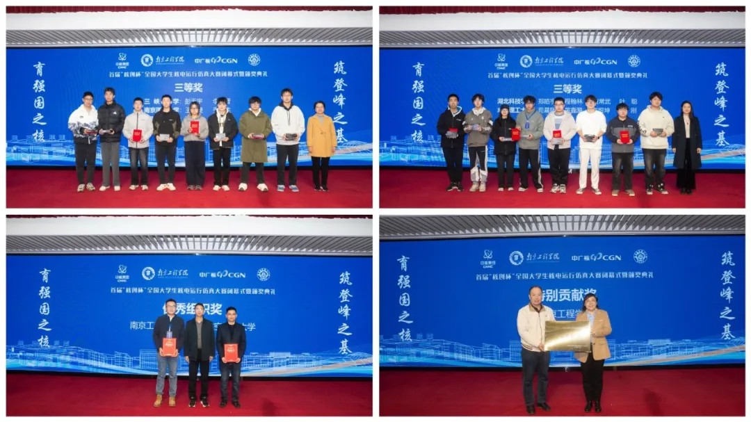 大赛涵盖理论考核与仿真实操环节,全面考察选手在核电安全运行、故障处理及团队协作等方面的能力。经激烈角逐,共评出特等奖1项、一等奖2项、二等奖5项、三等奖8项。南京工程学院与南京航空航天大学获“优秀组织奖”,南京工程学院还荣获“特别贡献奖”。